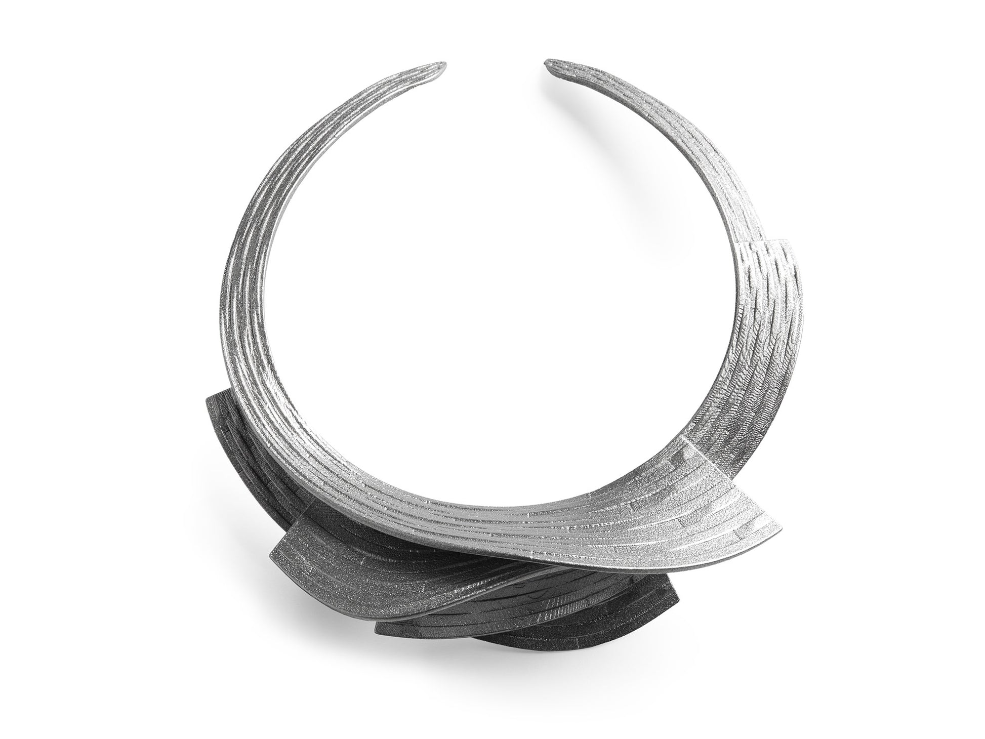 Lamina speaks in the voice of metal—cool and commanding at first glance, yet warm and intimate against the skin. Its lines flow in harmony with the body’s natural rhythm, transforming adornment into a living architecture.